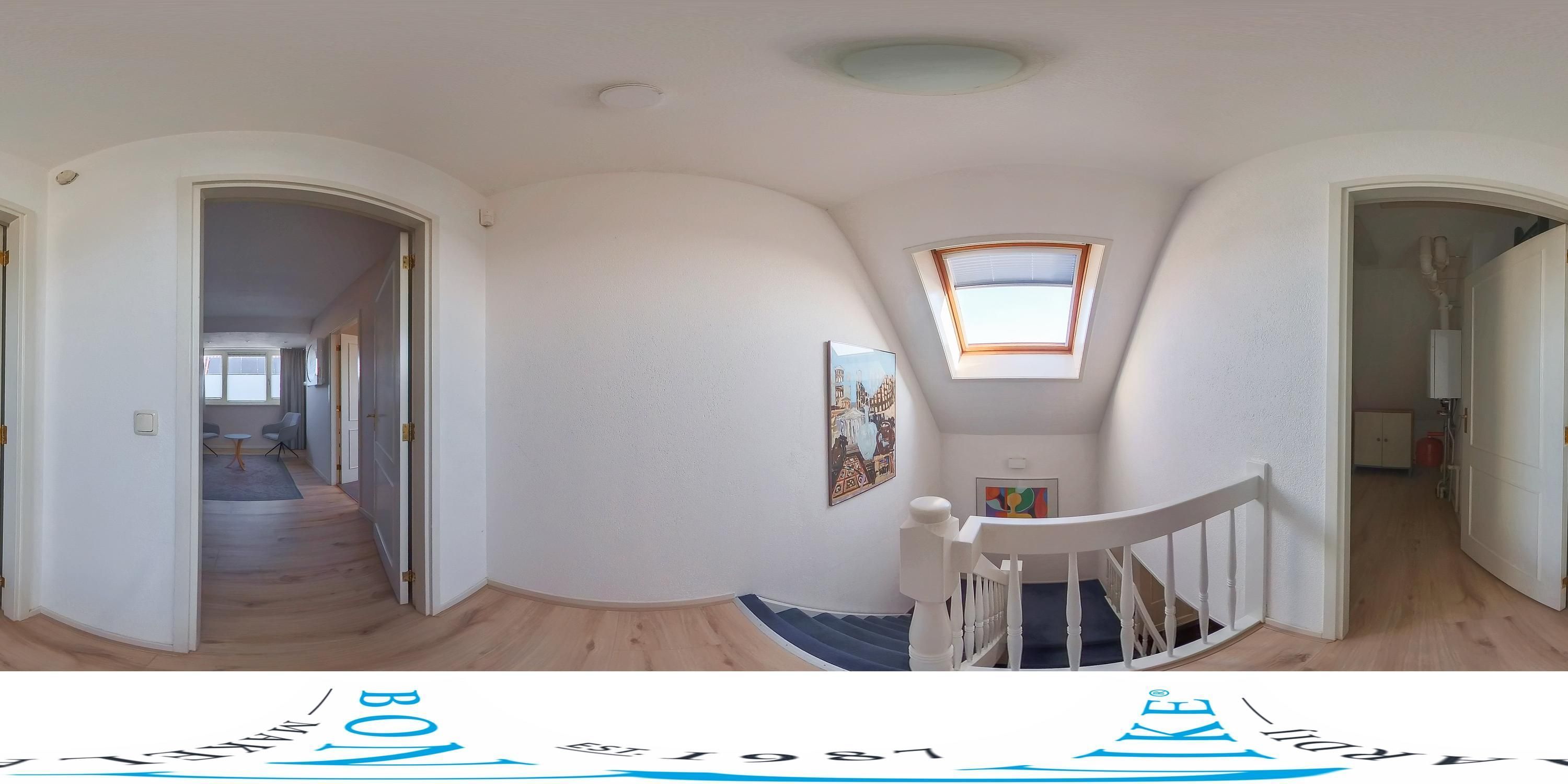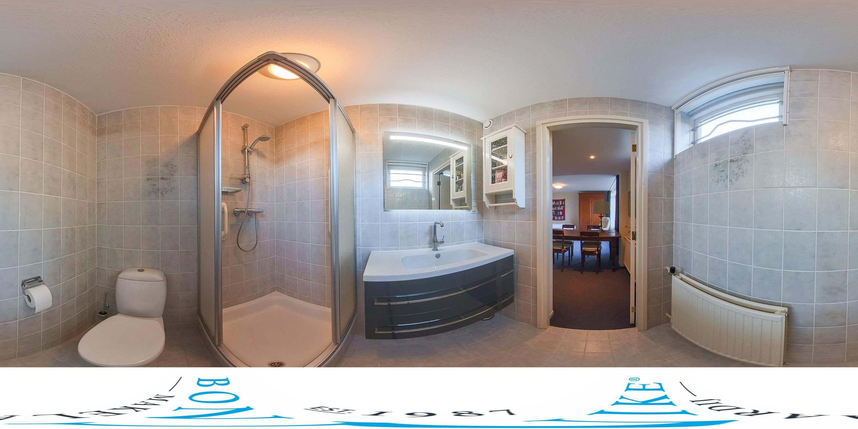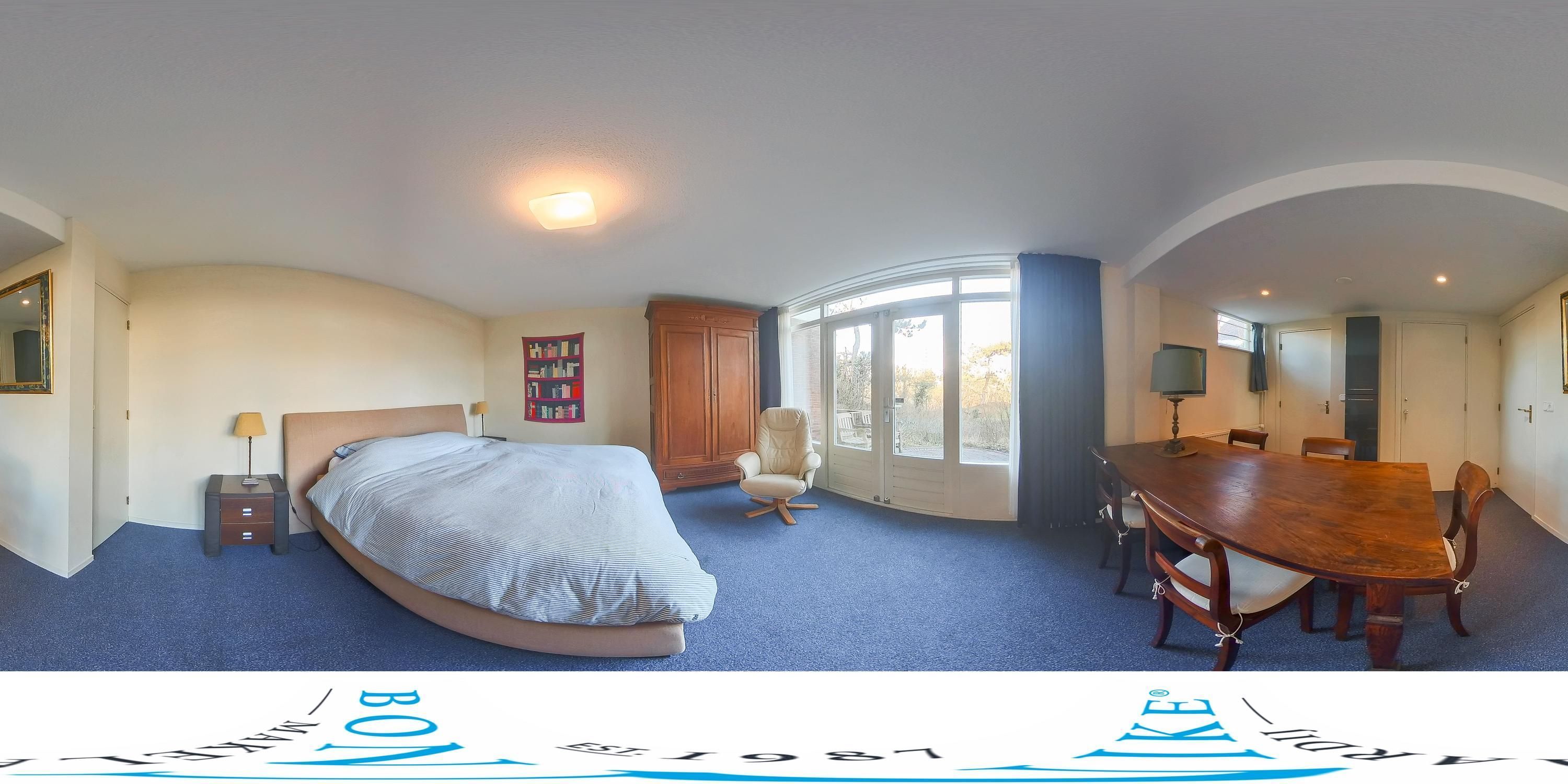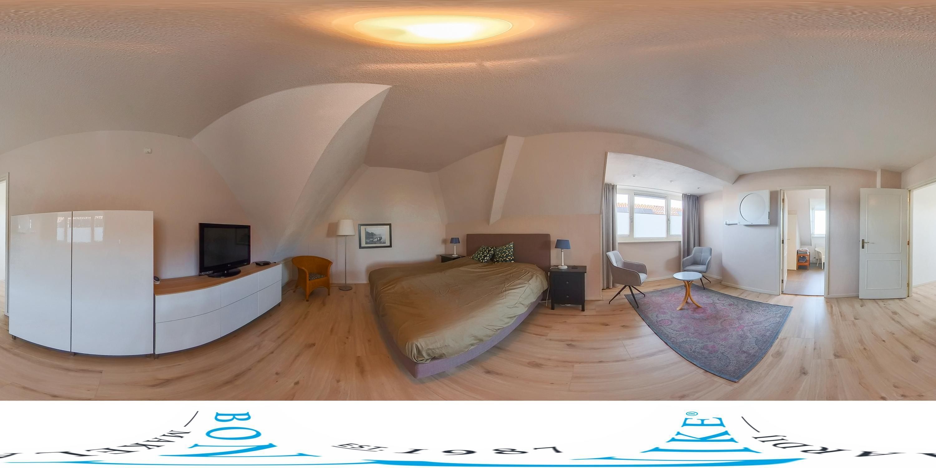 Via de trap kom je in de master bedroom met airco, dakkapel en uitzicht op de omgeving. De zeer ruime badkamer heeft een dakkapel, regen-/handdouche, toilet en dubbel wastafelmeubel. Hier kijk je uit over het duinlandschap en de zee. Via de overloop bereik je de walk-in closet, met cv-combi en berging.