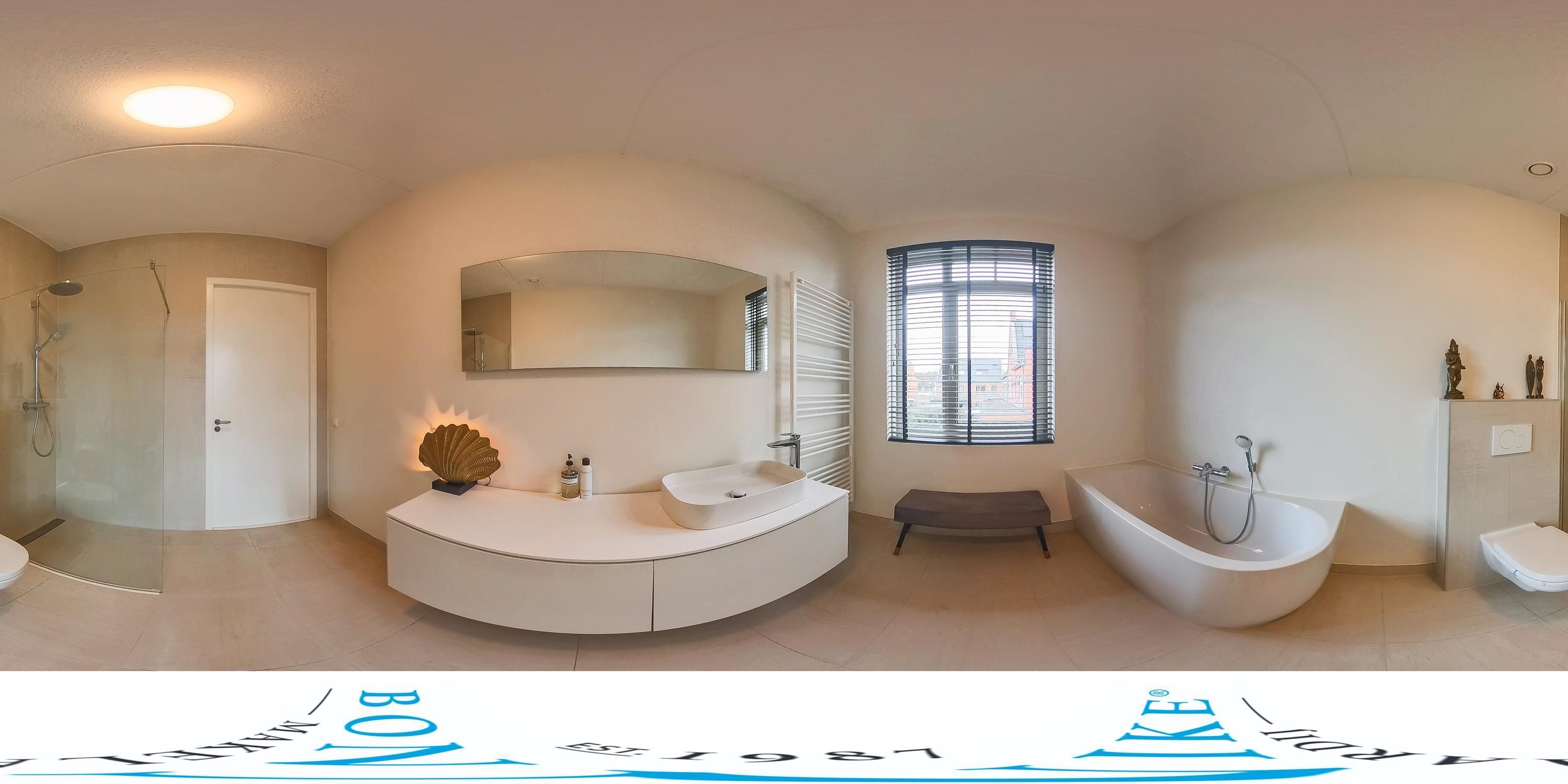 - Tweede badkamer met inloop regendouche, wastafel en derde vrijdragend toilet;