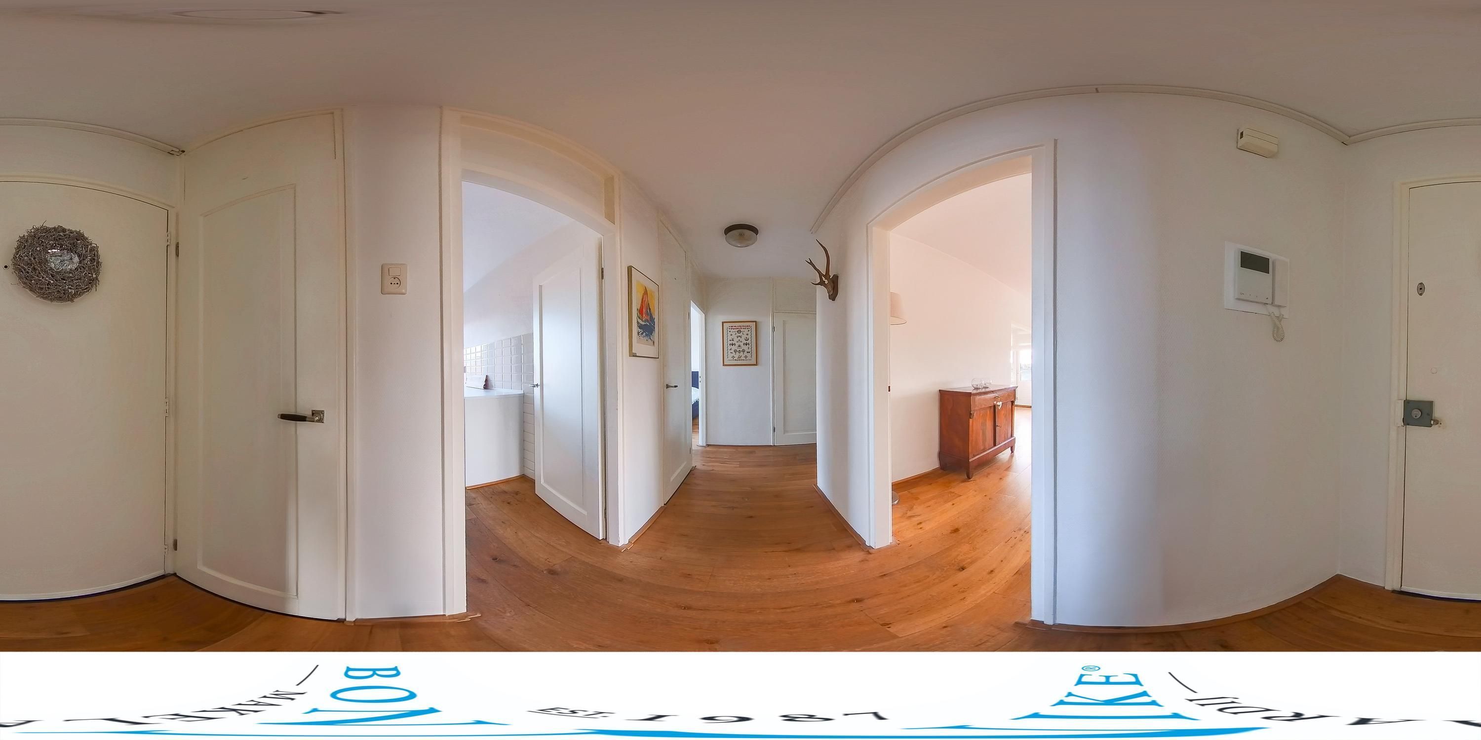 In de hal bevinden zich een garderobe, meterkast, vaste bergkast met een 80-liter warmwaterboiler én een praktische bijkeuken (voorheen keuken) met extra bergruimte en toegang tot het tweede balkon aan de achterzijde van het appartement. Hier is eventueel ook een slaapkamer te creëren.
