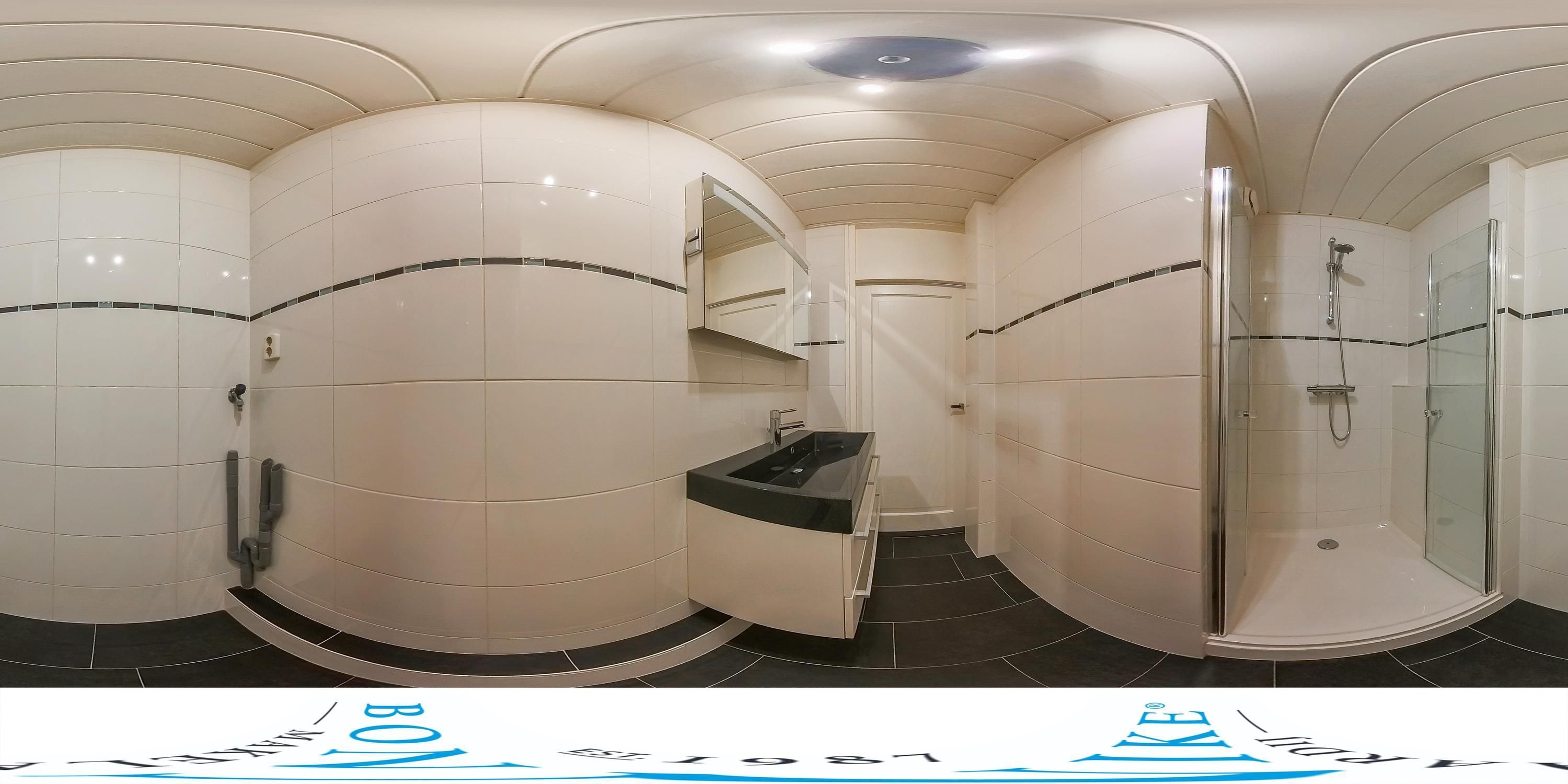 - Moderne badkamer met inloopdouche, wastafelmeubel en aansluiting voor wasmachine/droger;