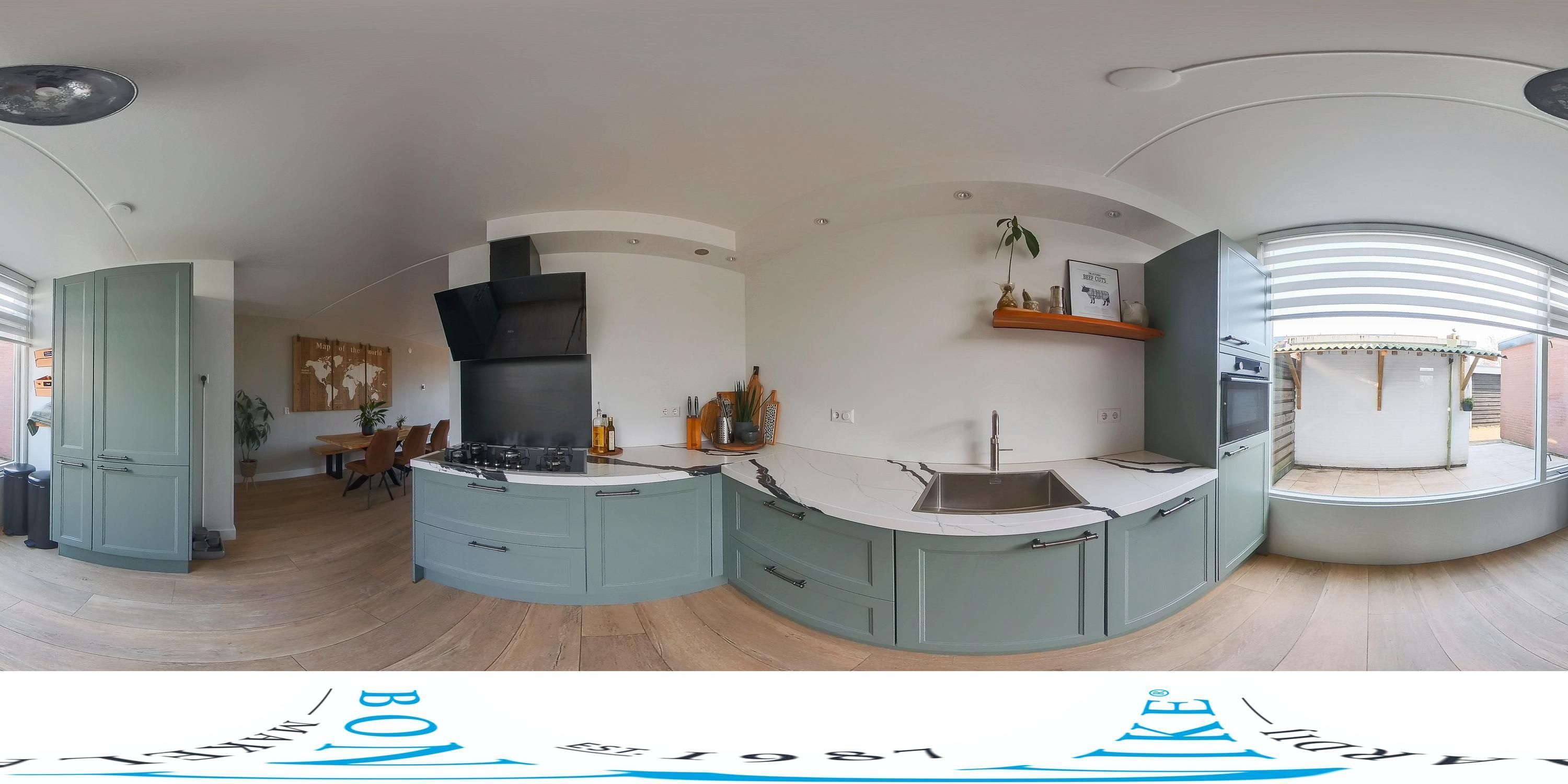 De keuken aan de voorzijde van de woning is recent gemoderniseerd en voorzien van diverse inbouwapparatuur, waaronder een 5-pits gaskookplaat met afzuigschouw, oven, vaatwasser en koelkast. In de wijk zijn meerdere woningen aan de voorzijde uitgebouwd; ook bij deze woning is dit goed mogelijk, waardoor het realiseren van een royale (open) woonkeuken een aantrekkelijke optie is.