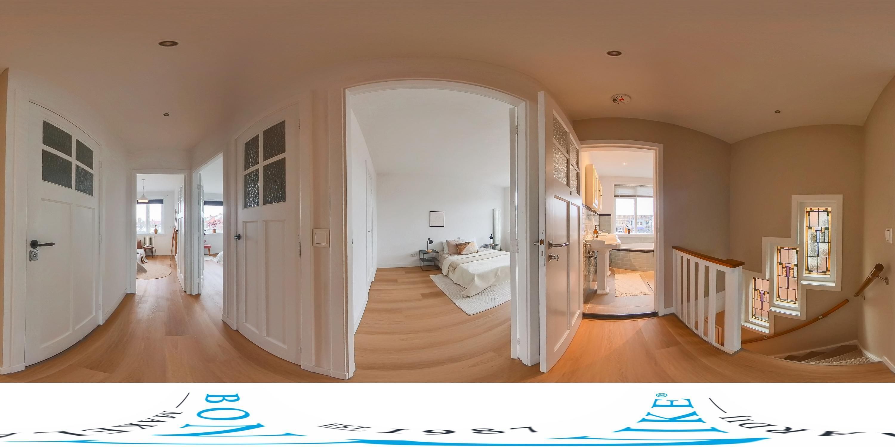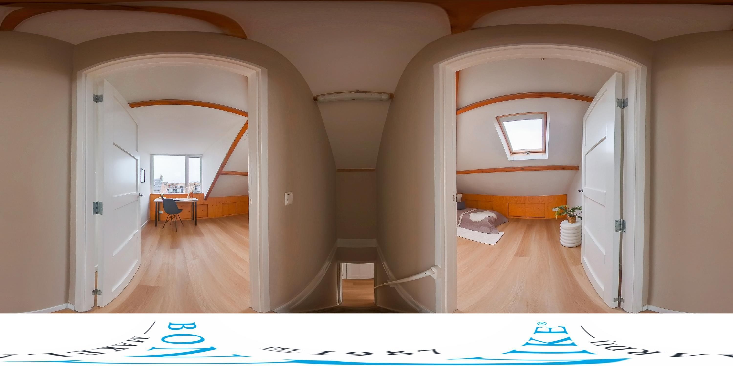 Via een trap vanaf de overloop, die eveneens opnieuw is bekleed, bereik je de tweede verdieping met twee ruime slaapkamers. Beide slaapkamers zijn voorzien van een dakraam en bieden voldoende opbergruimte. De slaapkamer aan de voorzijde beschikt daarnaast over een dakkapel, wat zorgt voor extra licht en ruimte.