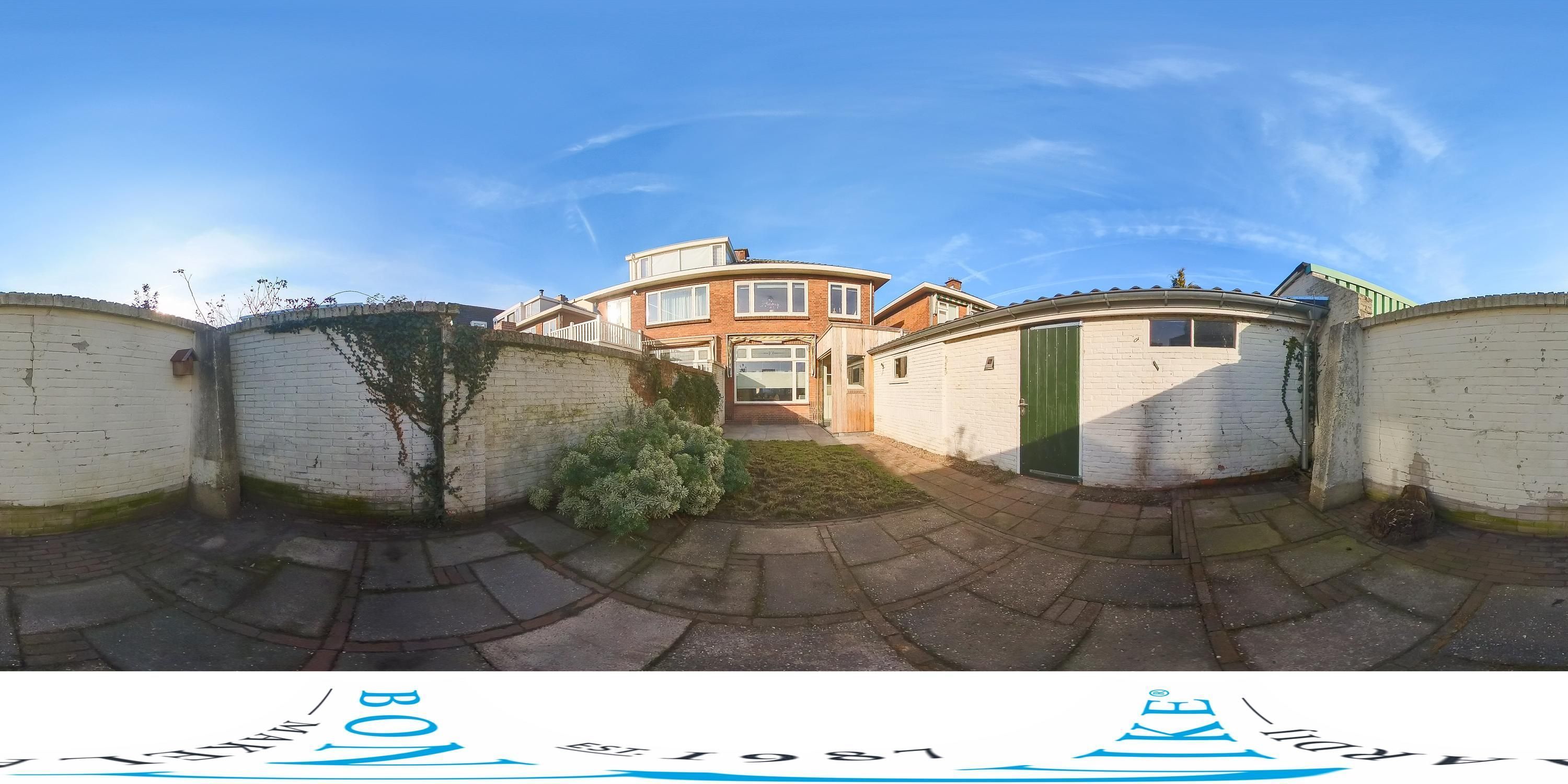 De achtertuin ligt op het oosten en beschikt over twee bergingen: een kleinere en een royale berging van maar liefst 11 m². De overkapping, die zowel vanuit de keuken als via het zijpad toegankelijk is, vormt een prettige overgang tussen woning en tuin en biedt bovendien directe toegang tot één van de bergingen. De onderhoudsvriendelijke tuin biedt volop ruimte om te ontspannen en te genieten van de ochtendzon en privacy.